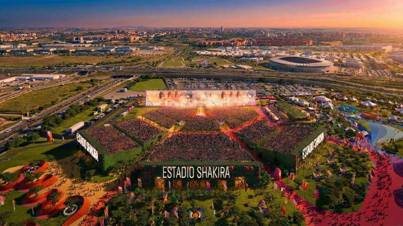 Cтадион вместимостью 50 000 человек задуман как площадка для концертов колумбийской певицы, которые пройдут в Мадриде в сентябре. Архитектурная студия BIG также предусмотрела дополнительные пространства для проведения мероприятий вокруг главной сцены. Как рассказала команда, проект представляет собой альтернативу традиционным стадионам, которые часто бездействуют в перерывах между мероприятиями. В отличие от них, площадка будет оставаться оживленной до, во время и после каждого музыкального шоу. Вокруг арены расположатся зеленые островки, вдохновленные пейзажами Испании и Латинской Америки и отсылающие к наследию певицы. Здесь также появятся изогнутые дорожки, частично закрытые навесами из яркой переработанной ткани.