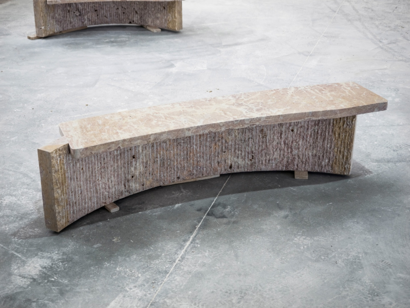 Дизайн-студия из Сан-Франциско показала серию Arc на дебютной мадридской ярмарке FORMA. Команда исследует в коллекции понятие равновесия: предметы отличаются монолитным изогнутым основанием в форме арки, которое распределяет нагрузку и обеспечивает структурную устойчивость. Скамья, приставной и журнальный столики задуманы как диалог между двумя состояниями камня — шероховатым, со следами промышленной обработки, и гладким, отполированным до матового блеска. По словам авторов, это сочетание создает непрерывный контраст необработанного и изысканного, призывая зрителя задуматься о феномене времени и трансформации. Объекты изготовлены из камня, который можно часто встретить на тротуарах, фасадах и в общественных местах Португалии и Испании. Блоки были получены из заброшенных карьеров: таким образом студия повторно использовала материал, вышедший из коммерческого производства из-за визуальных несовершенств.