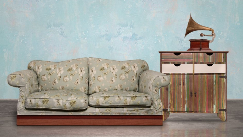 Винтажные кресла и диваны. Поищите на блошиных рынках или в антикварных магазинах кресла и диваны с обивкой в ретростиле. Обратите внимание на изогнутые формы, деревянные ножки и яркие расцветки. Если обивка потертая или повреждена, можно перетянуть мебель новой тканью с принтом или однотонной, подходящей по стилю.