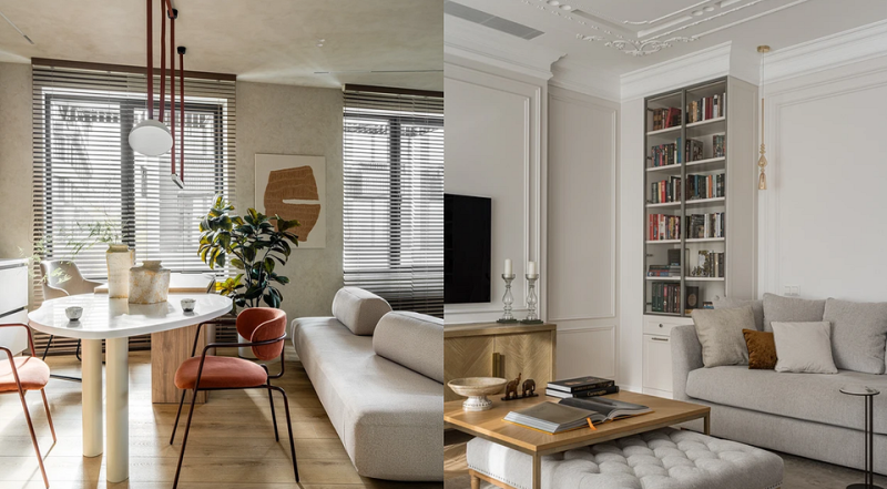 Не бойтесь сочетать классическую лепнину с технологичными решениями. Например, внутри изящного потолочного карниза может прятаться скрытая светодиодная лента, а массивная розетка — соседствовать с современной лаконичной люстрой.