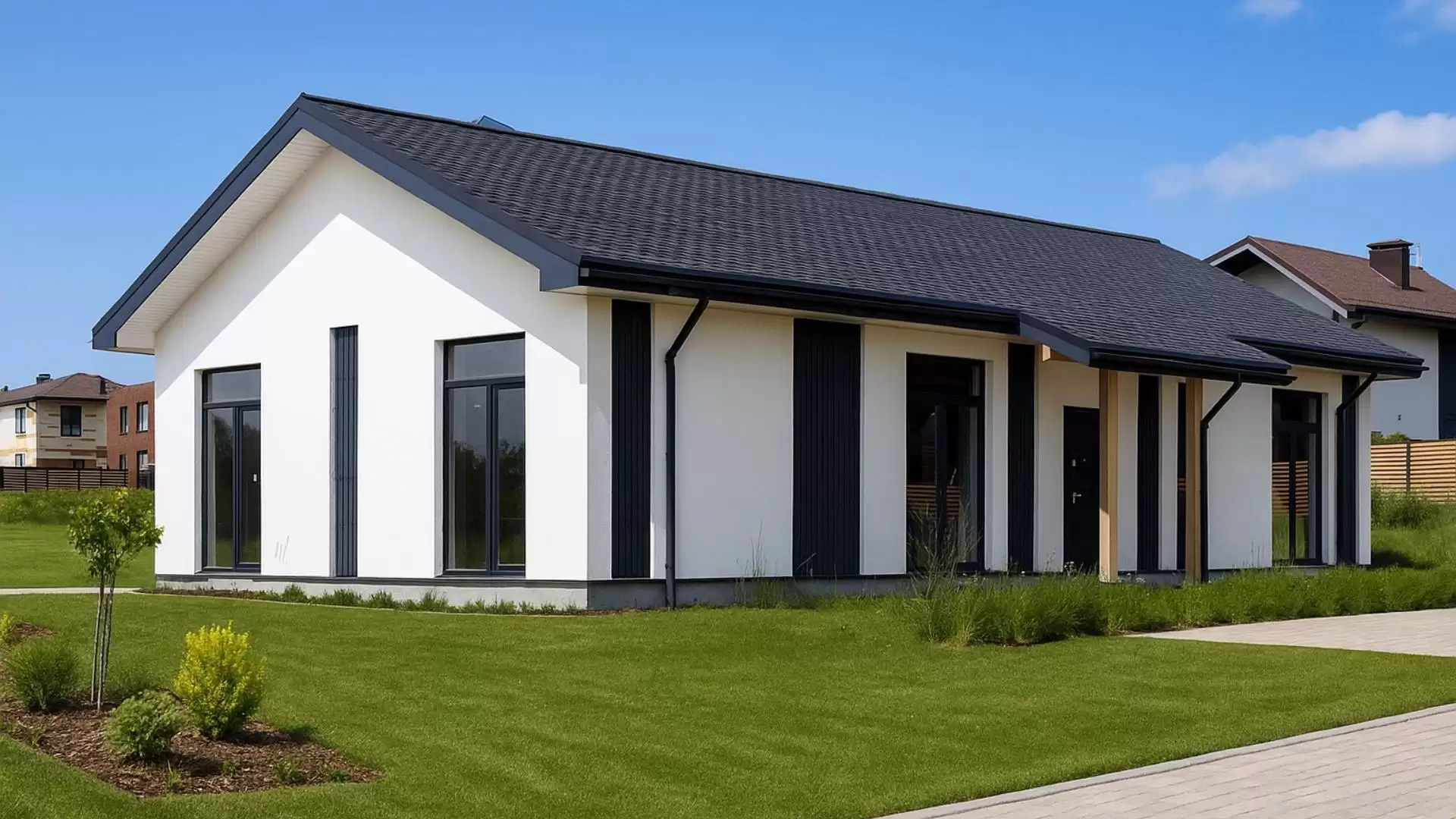Энергоэффективность: Конструкция панелей уже включает в себя эффективный утеплитель. Такой дом не требует дополнительной теплоизоляции, позволяя существенно экономить на отоплении зимой и кондиционировании летом.