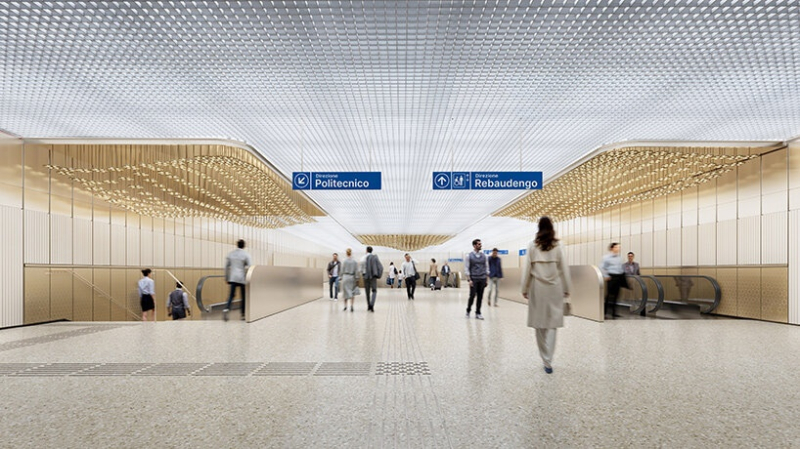 Концепция архитекторов, которая победила в международном конкурсе, переосмысляет метро как городскую систему, созданную движением и формой. Жюри выбрало проект студии за деликатное сочетание мобильности с общественным пространством. Так, команда UNS не рассматривает метро как скрытый слой, а выводит его на уровень улицы, позволяя входам, вывескам и пространственным ориентирам участвовать в урбанистической структуре. При разработке концепции архитекторы отталкивались от образа потоков людей в Турине — в результате проект задуман как «городская река», которая связывает районы, оставаясь понятной и открытой. Сдержанный визуальный язык станций, основанный на таких элементах, как арка, портик, изгиб и квадрат, отсылает к существующему городскому ландшафту. В подземных переходах и вестибюлях сделан акцент на мягком рассеянном освещении, а также на сочетании алюминия, керамогранита и текстуры терраццо.